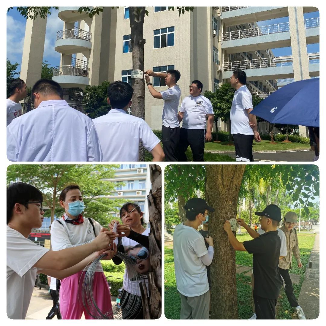 随后,全体师生分成四个小组,分别前往农科楼、主校道、三号教学楼、四号教学楼四个片区为附近的典型树木挂牌。