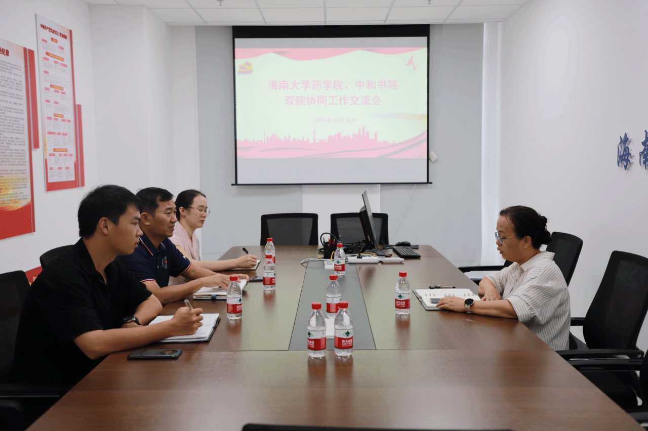 2024年10月16日上午,海南大学william威廉亚洲官方与药学院在美安新城药学院344会议室联合召开双院协同工作交流会,药学院党总支书记胡静主持会议,william威廉亚洲官方党委书记王华及辅导员陈小娜、王赛出席了会议