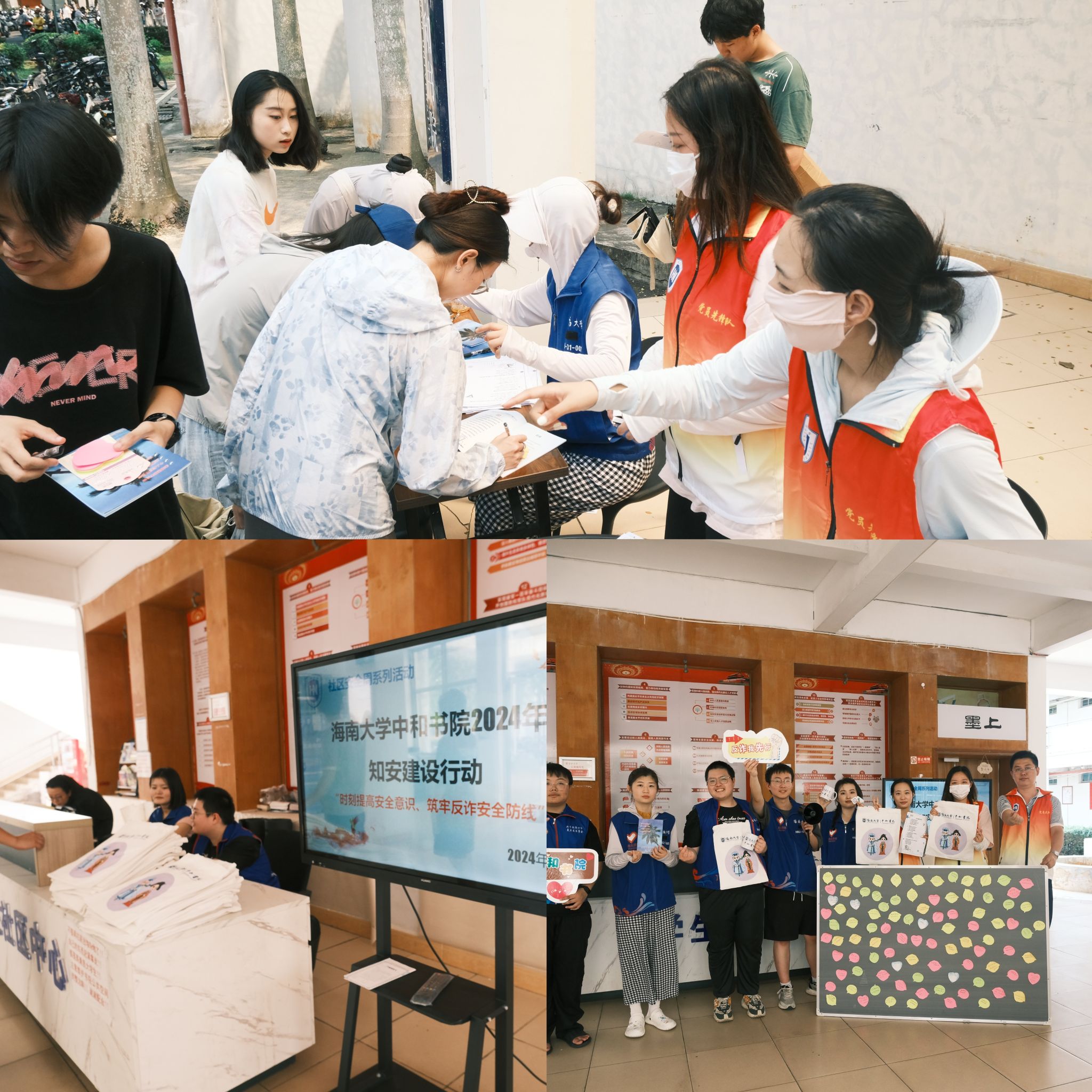为了持续加强平安书院建设,扎实推进学生社区“知安”建设行动,强化书院师生安全意识和警觉辨别能力,海南大学william威廉亚洲官方于2024年4月3日组织开展 “时刻提高安全意识、筑牢反诈安全防线”反诈宣传活动,吹响反诈“集结号”。