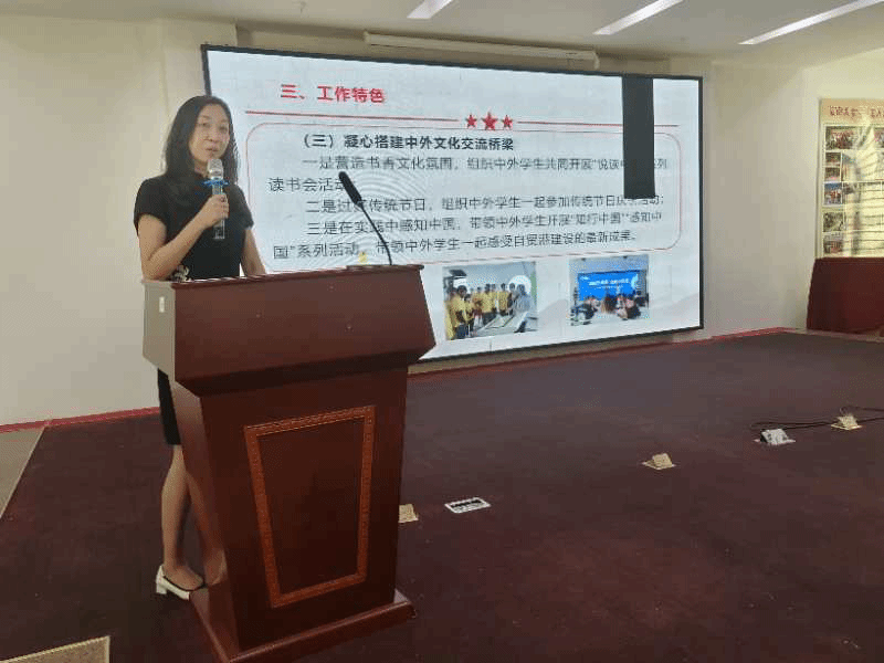 国际教育学院副院长张钊就学院老师分工方面,介绍了学院老师在教学、指导和学生服务等方面的工作内容,同时给出了清晰的学习大纲与学习任务,她希望新生们将主要精力放在学习上,在认真掌握专业技能的同时,不断精进汉语水平,通过HSK考试。