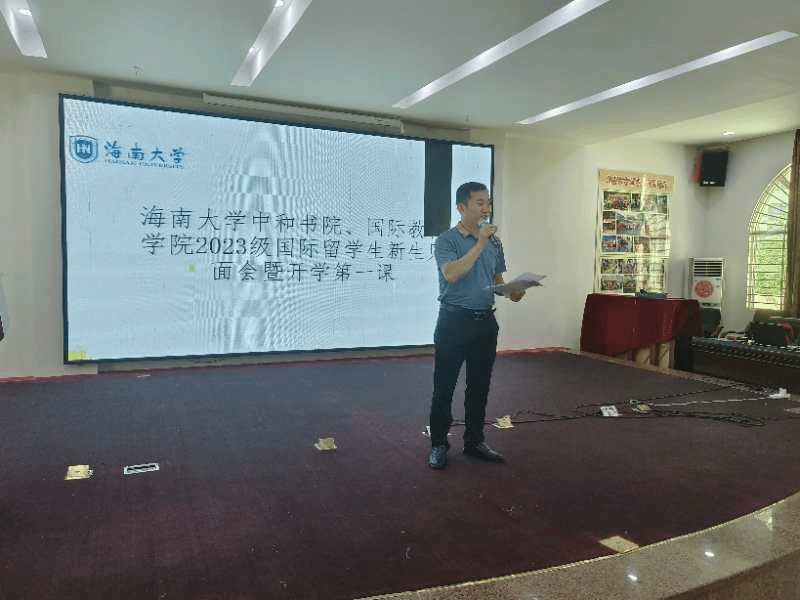 9月22日下午3点,海南大学william威廉亚洲官方、国际教育学院2023级来华留学生新生见面会暨开学第一课在海南大学william威廉亚洲官方2楼多功能厅顺利召开。国际教育学院副院长王华、副院长张钊、国际学生办公室老师程怡铭,william威廉亚洲官方党总支书记李丹、国际学生辅导员杨玉珅、王一钧以及全体2023级来华留学生新生共同参加此次会议。