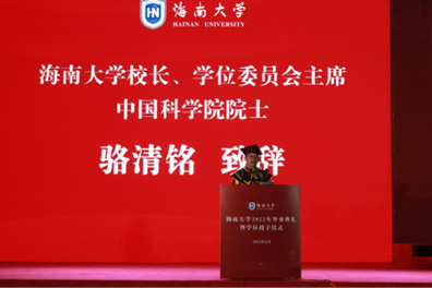 2022年6月19日,海南大学2022年毕业典礼暨学位授予仪式在第二田径场举行。海南大学党委书记符宣国,校长、学位委员会主席、中国科学院院士骆清铭,党委常委和校领导王崇敏、傅国华、胡新文、梁谋、曹兵、叶光亮、郑尉杰、聂清斌、曹宪忠、韩淑梅、谭勇、陈明宝,学术副校长杨天若与各学院等主要领导和教师代表,2022届本科、研究生、港澳台及国际学生毕业生出席本次典礼,海南省教育厅厅长曹献坤、教育部党建工作联络专员谭基虎、中国热带农业科学院副院长刘国道、海南大学热带土壤学科的主要创建者梁继兴和张少若、海南大学南海历史文化学科的创建者周伟民和唐玲玲,原海南大学校领导黄国泰、刘康德、李建保、周兆德、林强,2000届应用电子专业校友吕立彪、2004届旅游专业校友王喜雅、2005届环境生态专业校友熊代群以及学校教师代表、毕业生代表、毕业生家长代表等受邀参加了仪式。