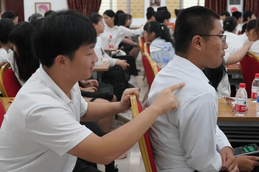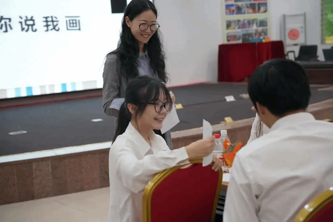 杨玉珅老师特别设置了四个体验游戏,分别是照镜子、闭眼过河、传递信息和你说我画。在体验游戏的同时,我们可以体会到老师安排不同小游戏的深意,意在告诉同学们在进行学生工作时沟通和团队合作是十分重要的,每个对接环节出现失误都会导致结果不同。