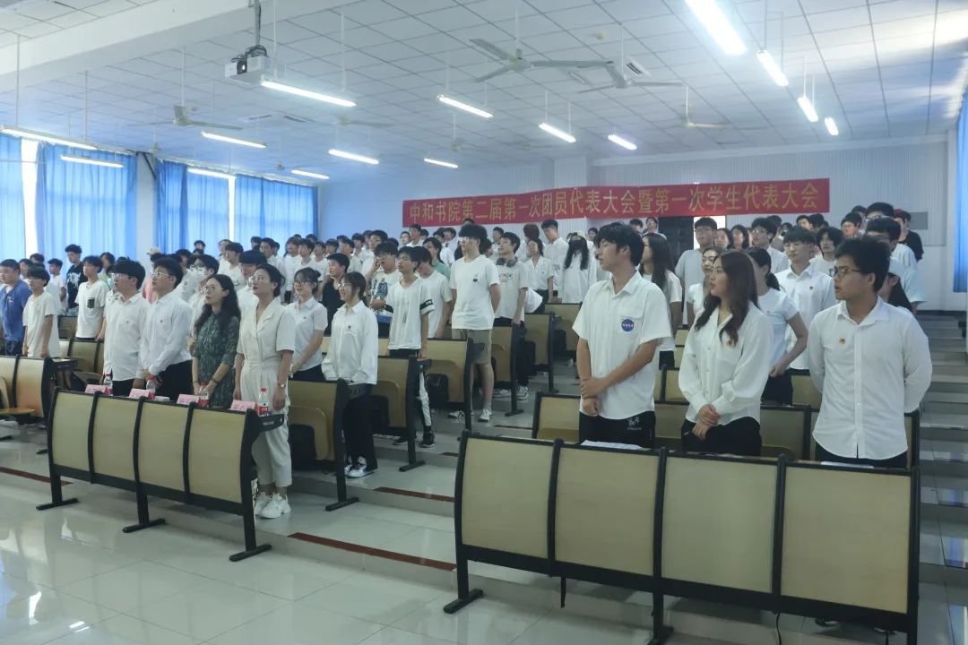 主持人王歆颖致闭幕词,全体代表起立奏唱团歌《光荣啊!中国共青团》。