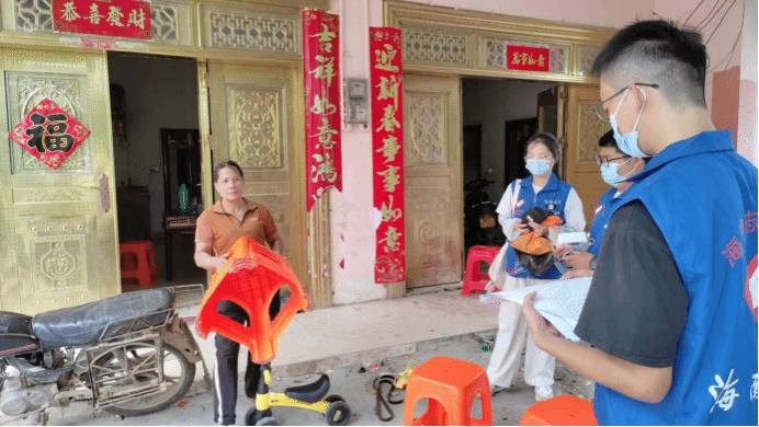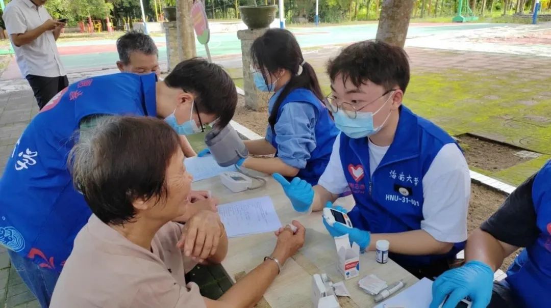 实践活动中,志愿服务队队员采用“定点健康服务”+“入户访谈调研”相结合的方式,实地调研村民对高血压、高血糖相关知识的知晓掌握情况和患者的自我健康管理情况。