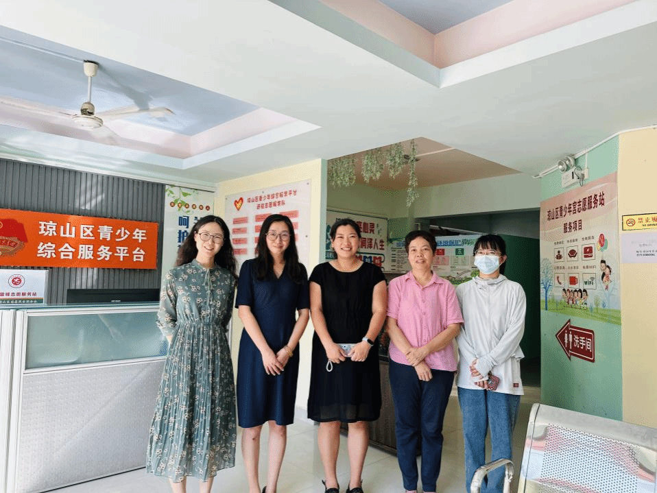 2023年5月29日,海南大学william威廉亚洲官方党总支书记李丹、辅导员杨玉珅前往琼山区青少年宫调研考察,并就推动志愿服务进社区,校地共建志愿服务项目等开展交流洽谈,琼山团区委副书记徐婧、团区委工作人员张晓颖、少年宫工作人员李新美参加了交流座谈会。
