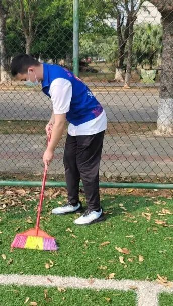 为了避免同学们经过草丛时裤脚缠上枯枝败叶,志愿者们仔细将草丛里面的枯叶打扫干净。