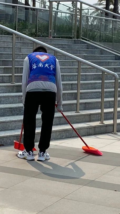 活动过程中,中和青协的同学们带领志愿者打扫校园,做好校园卫生,营造更为干净整洁的环境,让海大校园更加美观。