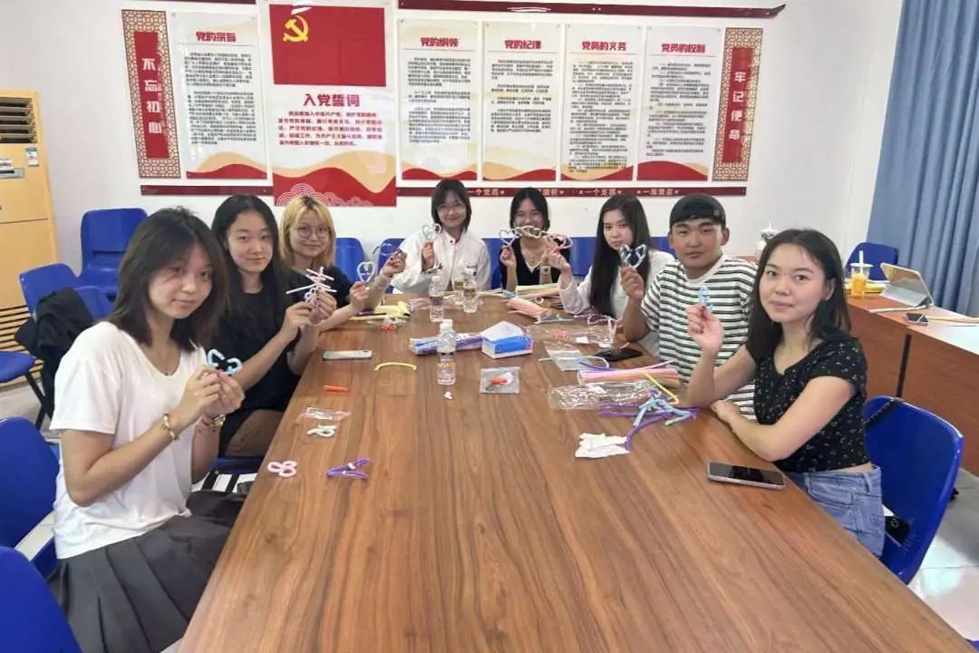在这个环节中,主持人组织同学们用扭扭棒模拟出甲骨文汉字的形状。中外学生亲自通过动手体验,进一步体会到甲骨文字体的形制特点与轮廓之美。