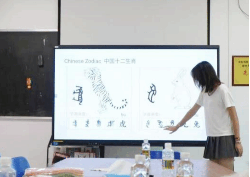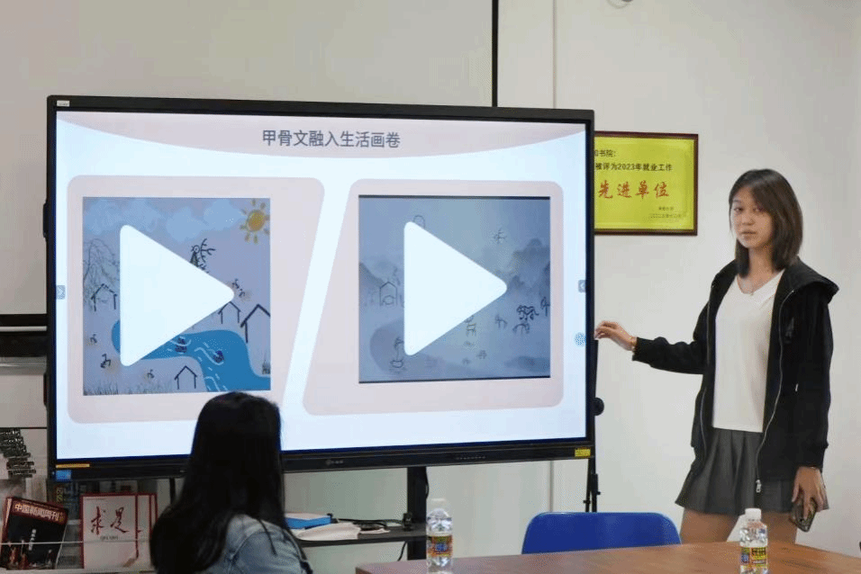 首先,主持人向同学们讲述甲骨文是如何被发现并成为现今文化瑰宝的漫长历程,同学们了解到这一古老文字所富有的深刻历史内涵。