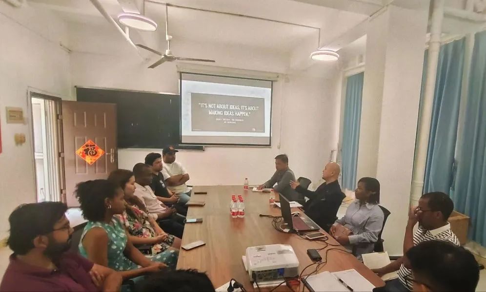 座谈会氛围热烈活跃,于雁群秘书长、乔漪副主任分别进行了自我介绍,于雁群秘书长介绍了海南自贸港建设的发展前景,鼓励大家积极参与商业贸易类的创业活动。国际留学生们积极交流了各自的商业计划,包括前期准备、市场行情、发展前景、现实困难等。同时于雁群秘书长、乔漪副主任就学生提出的问题进行了详细的解答,并从政策和实操的角度指出学生项目优势以及局限性,给学生们提出了宝贵的意见,使计划更加具有现实性和可实施性。
